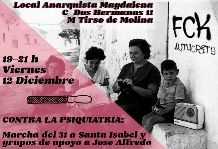 Más info en https://localanarquistamagdalena.org/charla-contra-la-psiquiatria-marcha-del-31-y-caso-de-jose-alfredo/