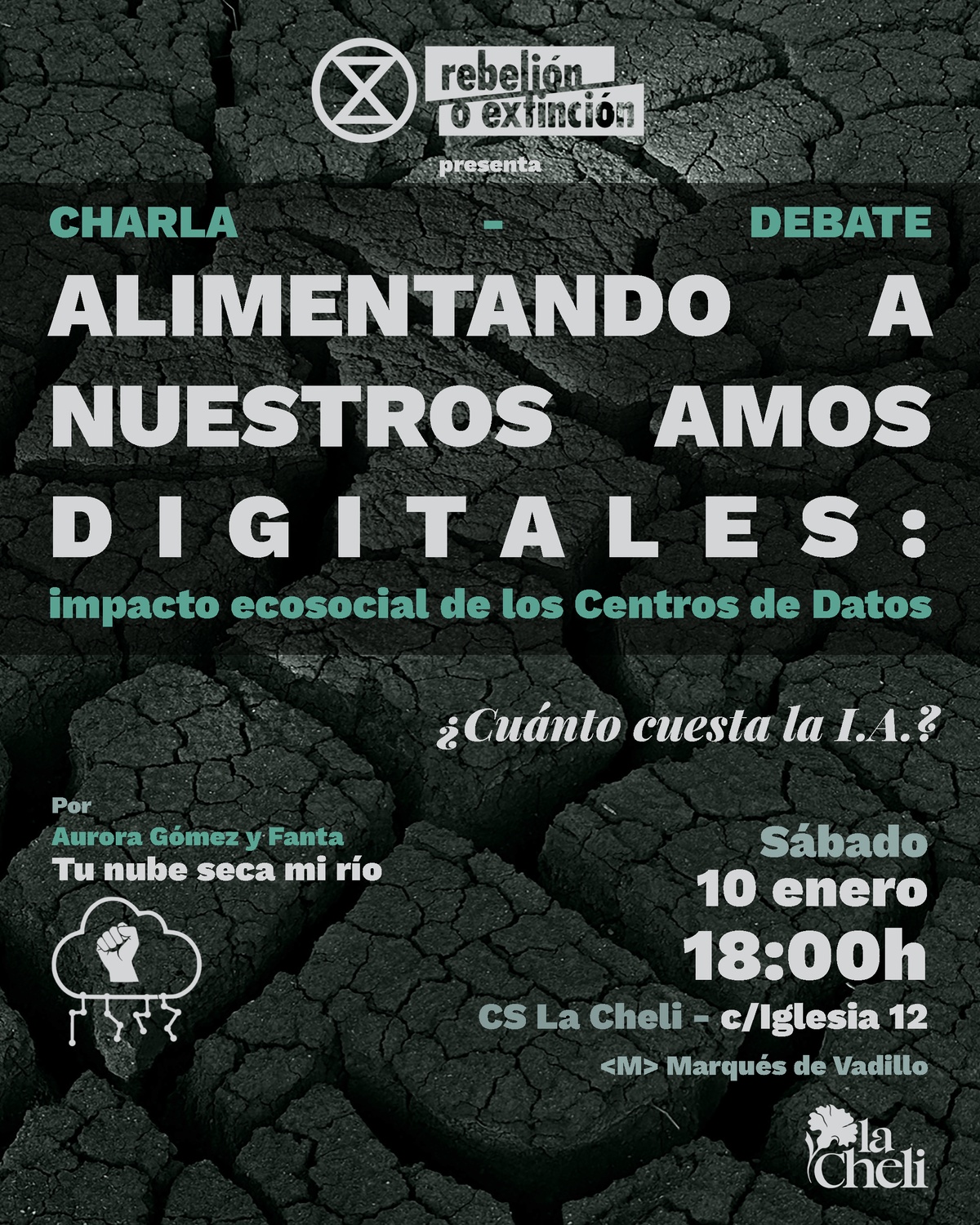 Acércate a esta charla-debate impartida por Aurora Gómez y Fanta del colectivo "Tu nube seca mi río" donde hablaremos del impacto ecosocial de los Centros de Datos y la famosa digitalización.