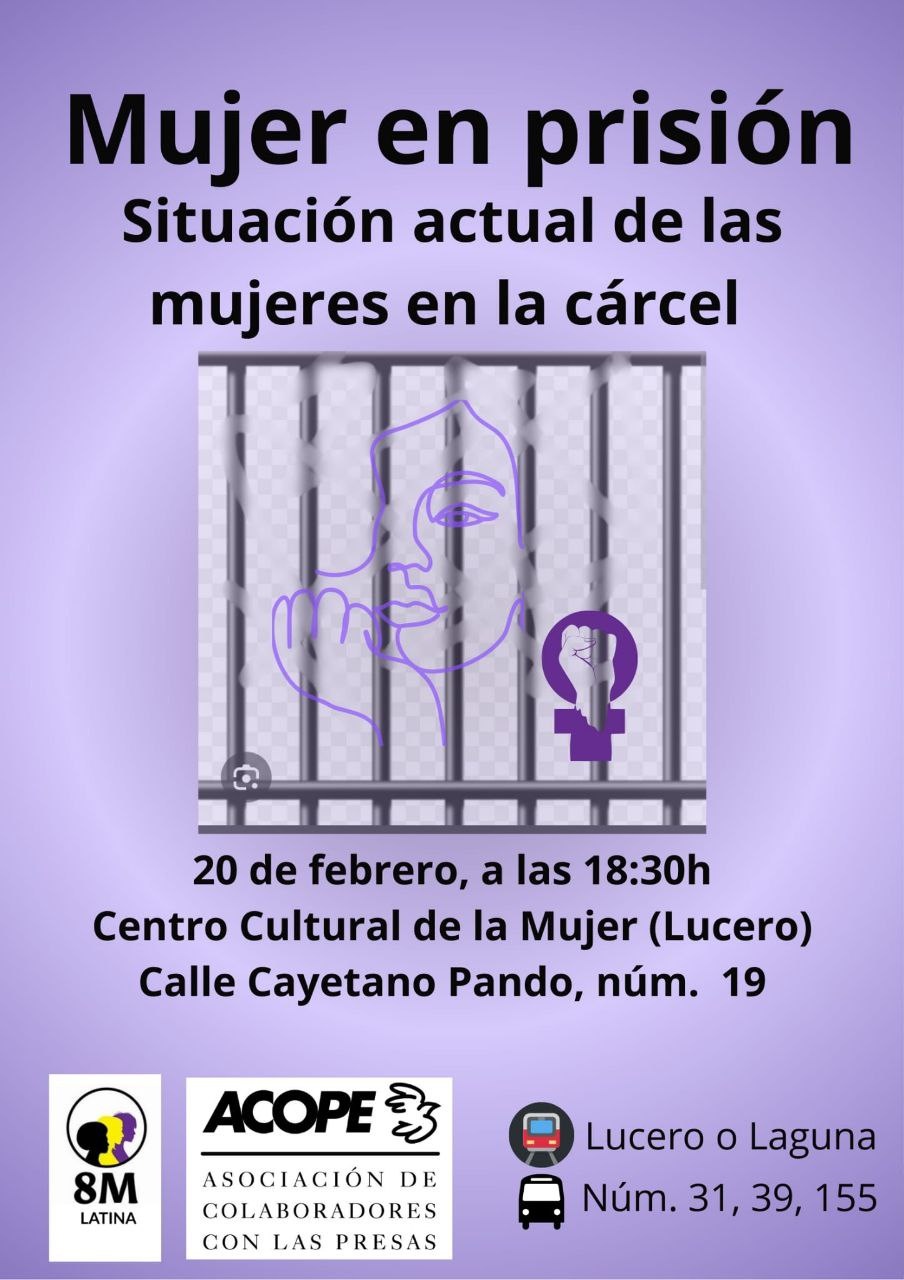 La jornada estará a cargo de ACOPE (Asociación de Colaboradores con las Presas) , una entidad con más de 40 años de trayectoria dedicada al acompañamiento y defensa de los derechos de las mujeres en prisión.