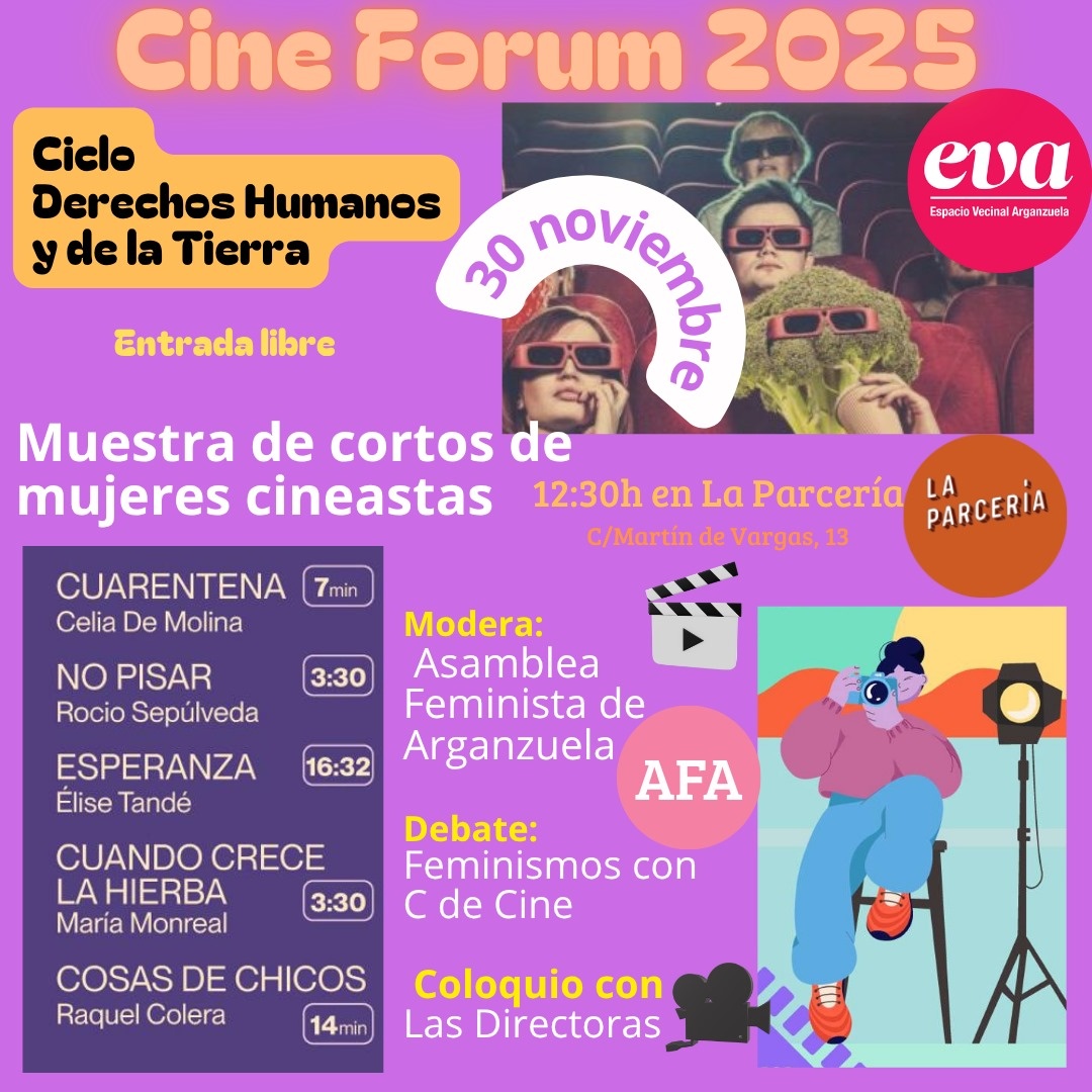 Muestra de cortos de mujeres cineasta sin embargo veinte y veinticinco cinco ciclo derechos humanos de la Tierra cuadran cuarentena siete minutos no pisar tres minutos y 30 esperanza 16 minutos y 32 cuando crece la hierba tres minutos 30 Cosas de chico 14 minutos