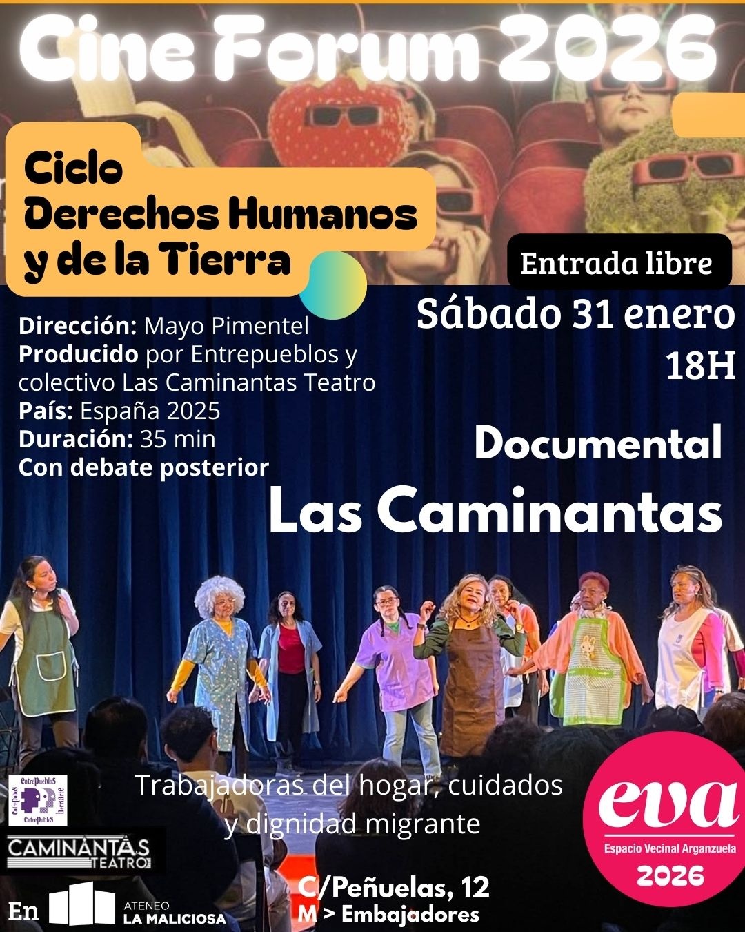 En EVA comenzamos el año con una propuesta inmejorable en la octava sesión del CineForum por los Derechos Humanos y de la Tierra con la proyección de «Las Caminantas: Teatro, Cuidados y Dignidad Migrante».