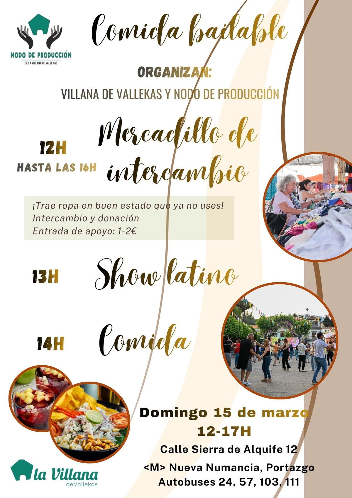 Habrá comida con opción vegetariana, baile y mercadillo de intercambio (trae prendas que ya no quieras y llévate ropa gratis; entrada simbólica 1-2€).