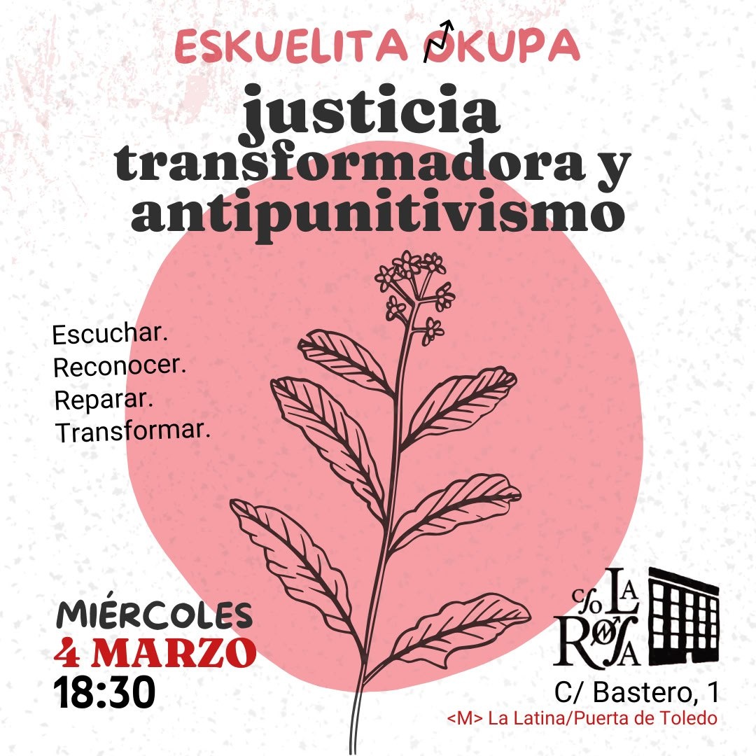 Por eso no buscamos las herramientas así sin más, sino enfoques de justicia restaurativa y transformativa, construidos en movimientos de base, que eviten reproducir las lógicas del sistema a la hora de cuidarnos, de confrontarnos, de transformarnos en el daño.