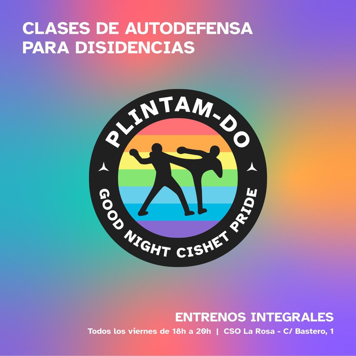Uno de los objetivos de PLINTAM-DO (@plintamdo) es acercar la autodefensa a personas LGTBIQA+ así como hacer activismo en torno al desarrollo de la autodeterminación, el empoderamiento y las capacidades de une misme.