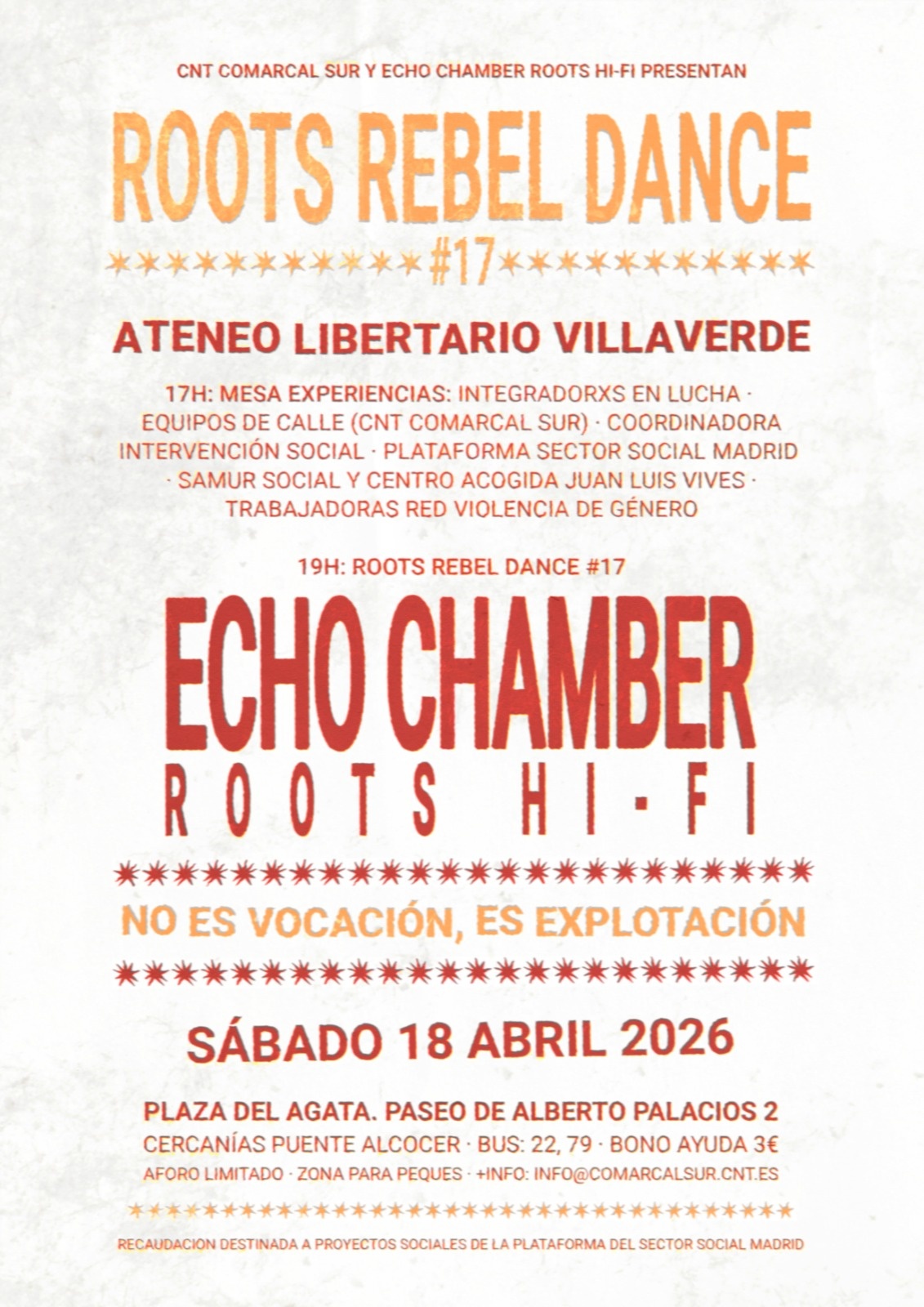 Una jornada de lucha al ritmo de Roots & Culture contra la precariedad laboral, porque NO ES VOCACIÓN, ES EXPLOTACIÓN.