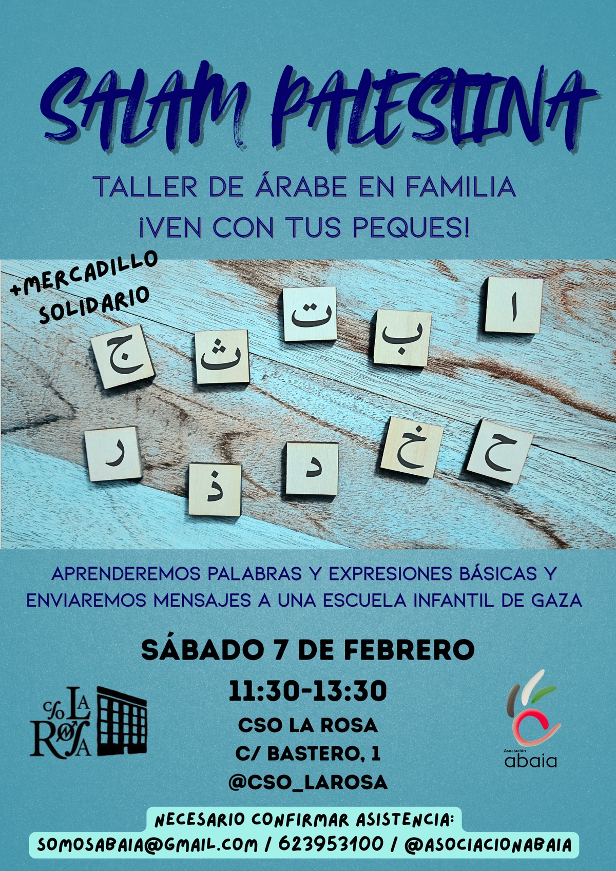 Taller de árabe en familia. ¡Ven con tus peques! Aprenderemos palabras y expresiones básicas y enviaremos mensajes a una escuela infantil de Gaza.