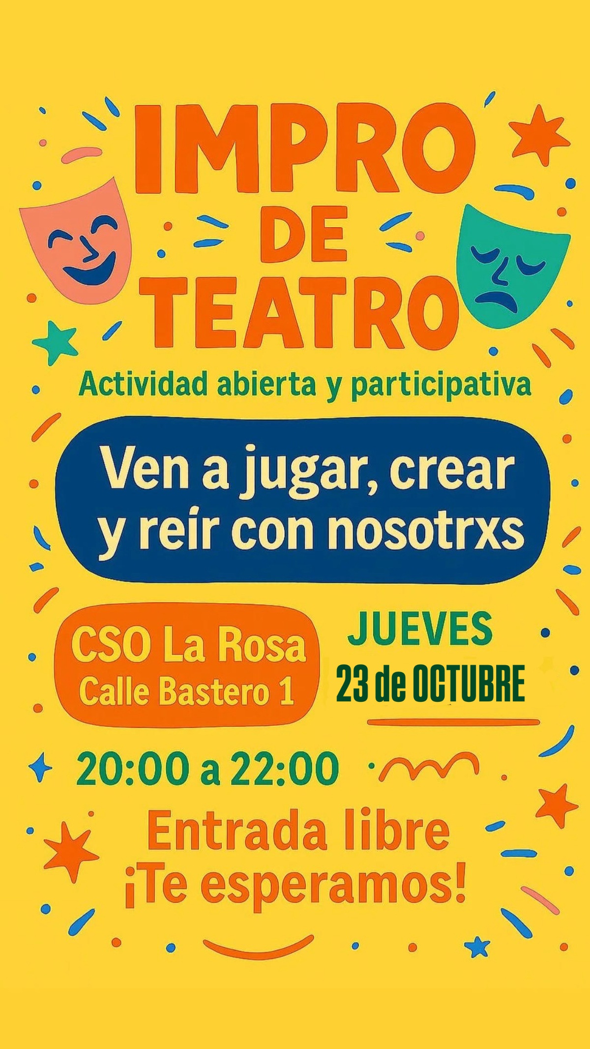 Desde el grupo de impro de teatro os invitamos a pasar un rato divertido con nosotrxs.