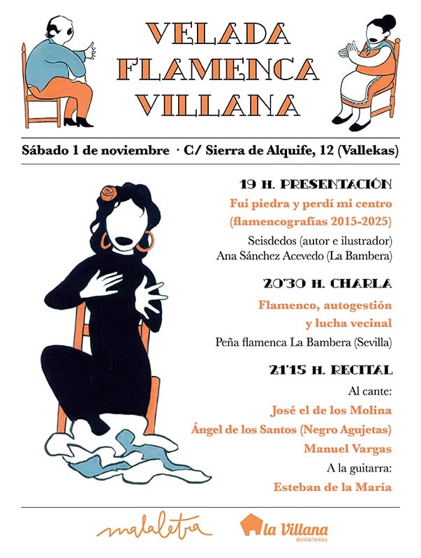 🎨 tendremos un poco de todo: presentación del libro del ilustrador seisdedos, experiencia de una peña afín como la bambera de sevilla y sobre todo cante, bien servido y acompañado por nuestro querido esteban a la guitarra... participemos sabiendo que el arte flamenco es también voz de los que luchan, de quienes sostienen comunidades que resisten la mercantilización del mundo.